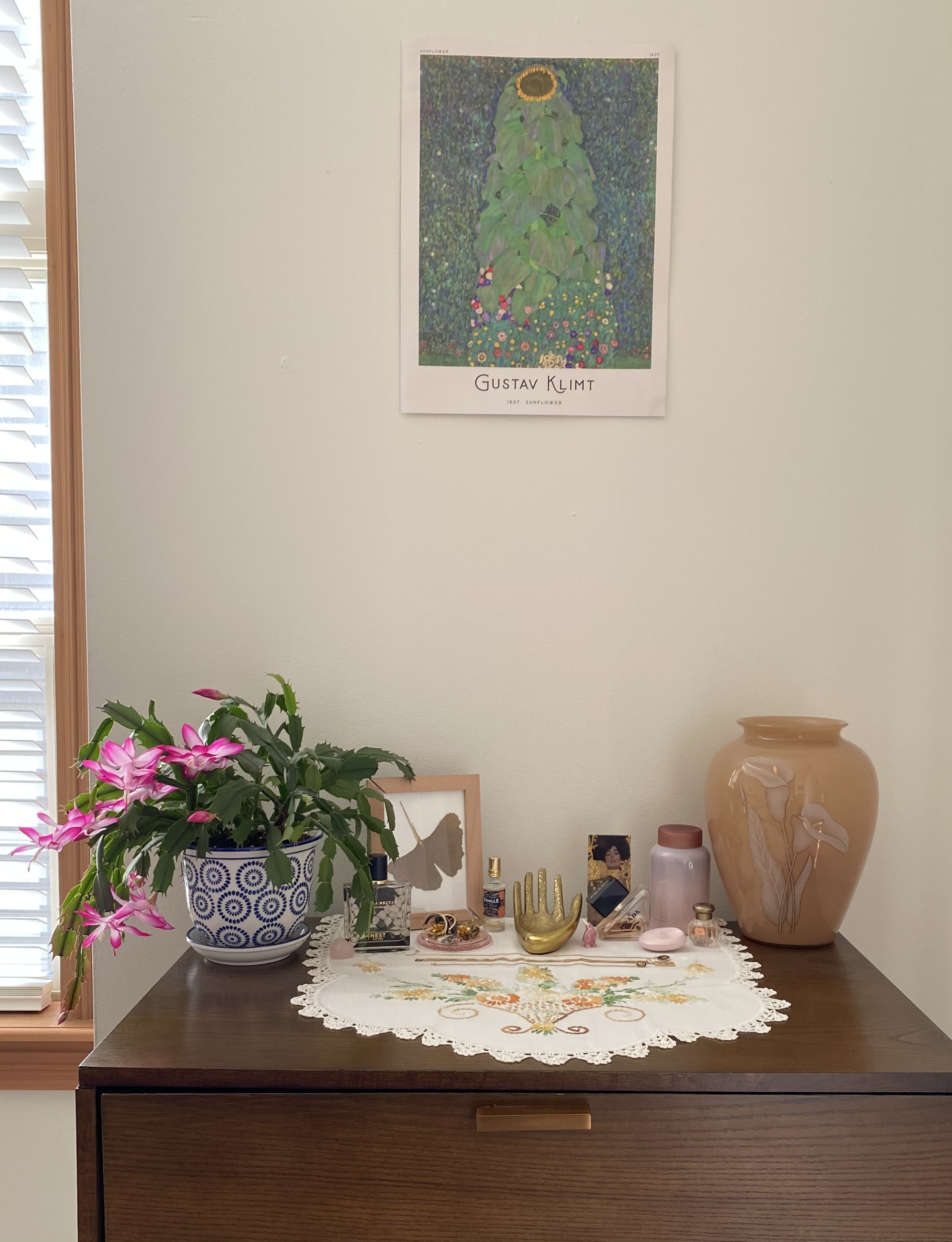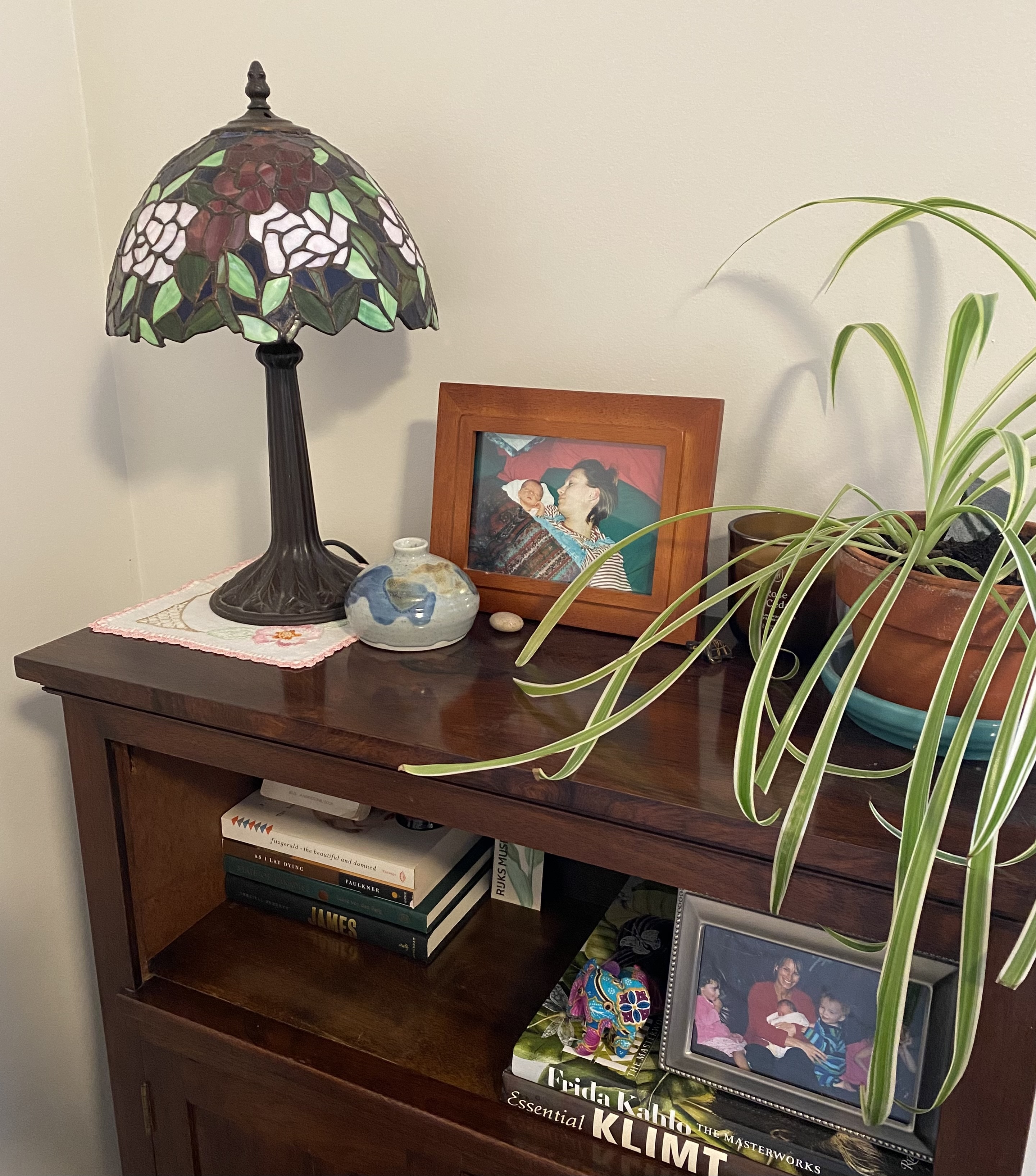 As illustrated by the two pictures above, the textile and fiber pieces produced by the Dye/Fischer/Arnold family remain in daily use. However, some items are seasonal so they are not always on view, and the full body of work is so large that it is not possible to utilize every item, so some pieces such as table runners or doilies are kept in storage. This collection allows for the simultaneous exhibition of a body of work that exists both in and out of use by a range of relatives.
