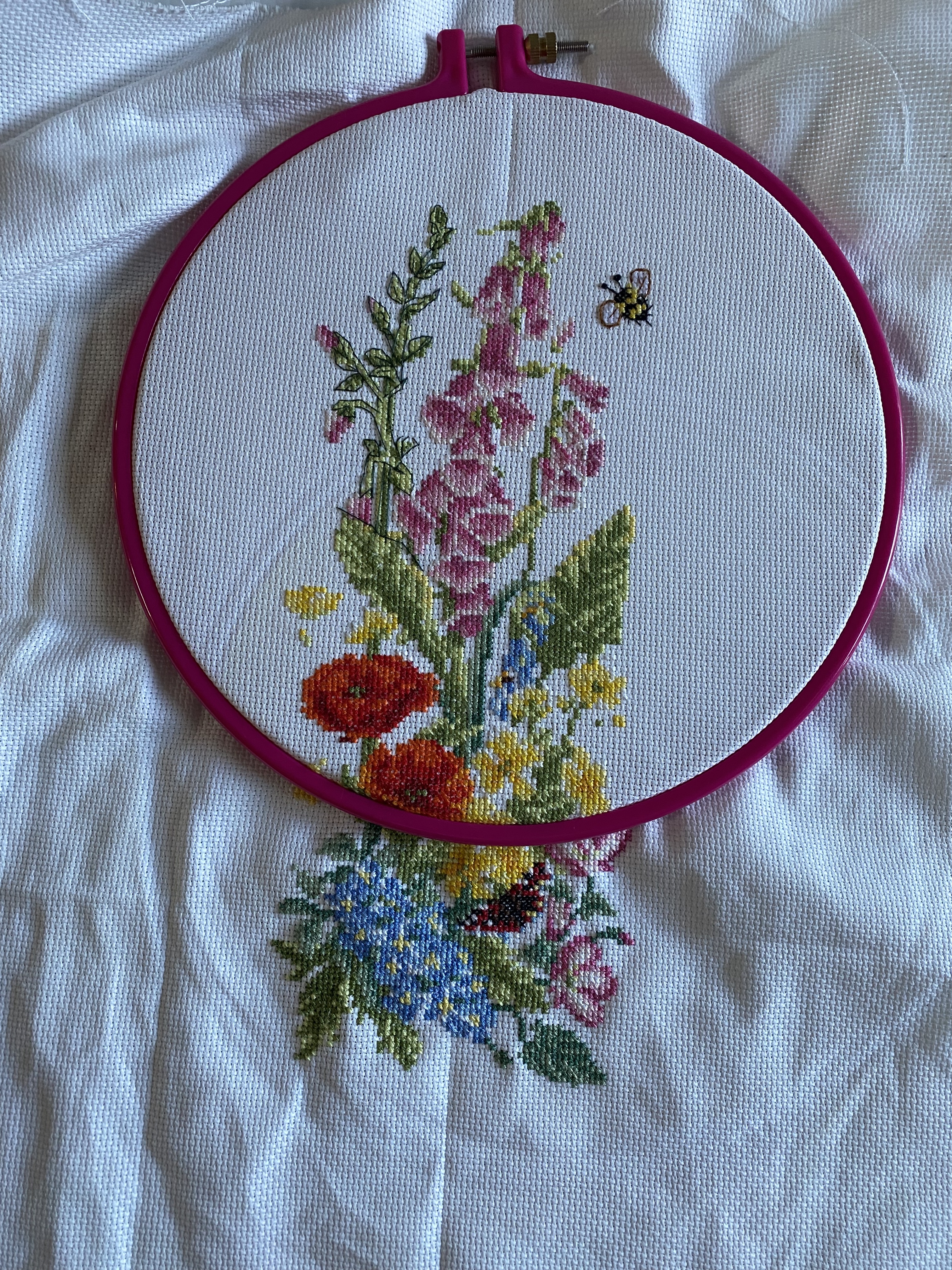 Despite the fact that it was ultimately completed during the process of the project, only the “work in progress” version of the above cross-stitch is included in the collection, in hope of demonstrating its dynamic and evolving nature. Although the body of work is still actively growing, this collection and the pieces it contains are a testament to the sore fingers and strained eyes of four generations of women in the Dye/Fischer/Arnold family, as well as a celebration of the labor of love that is fiber and textile art.